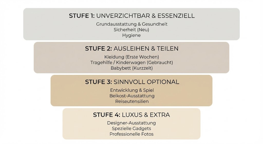 Viele Paare sind überrascht, wie schnell sich die Kosten der Erstausstattung summieren. Wer alles neu im Fachhandel kauft, landet nicht selten bei 4.000 Euro oder mehr. Das ist kein persönliches Versagen, sondern das Ergebnis fehlender Struktur.
