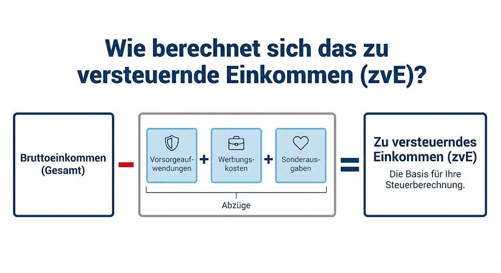 Das zvE ist euer Bruttogehalt minus Sozialversicherungsbeiträge, Werbungskosten und Sonderausgaben. Es ist der Wert, der auf eurem letzten Steuerbescheid steht – nicht euer Brutto auf der Lohnabrechnung.